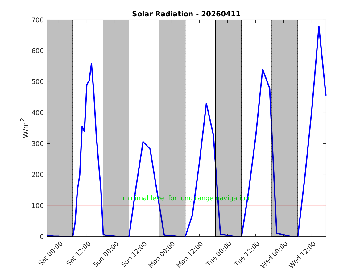 When the maximum daily solar radiation drops below 100 W/m^2 and the cloud cover exceeds 75 - 90% it is assumed there is not enough polarized light for the bees to navigate long distances,. Consequently we assume the bees cannot forage even if the temperature and wind speeds are favorable.