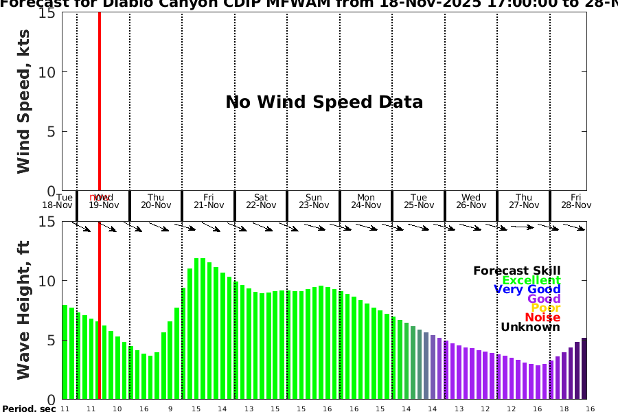 Diablo Canyon CDIP GFS Diablo Canyon CDIP MFWAM Diablo Canyon CDIP SWAN NDBC 46028 GFS NDBC 46028 MFWAM NDBC 46028 SWAN NDBC 46011 GFS NDBC 46011 MFWAM