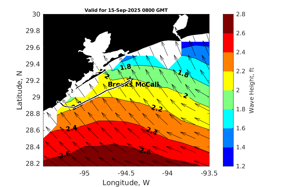 Latitude: 28.948N Longitude: 95.329W Position is valid as of 01-Sep-2025 03:28:56 College Station time.