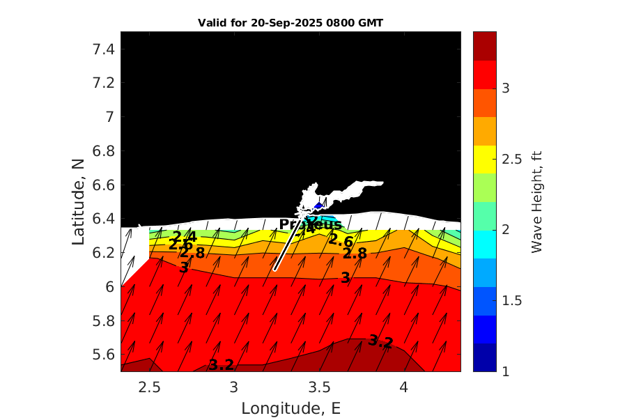 Latitude: 6.425N Longitude: 3.406E Position is valid as of 20-Sep-2025 03:49:06 College Station time.
