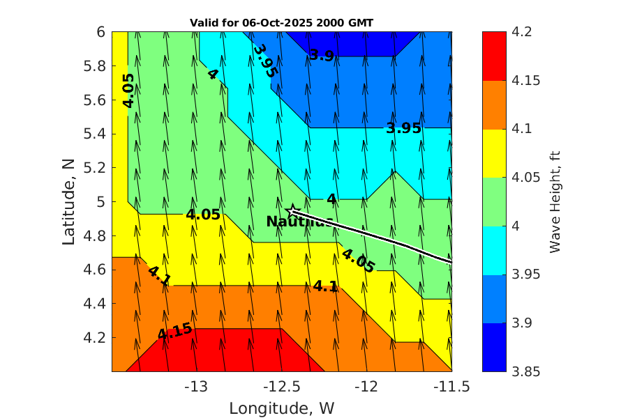 Latitude: 4.942N Longitude: 12.436W Position is valid as of 06-Oct-2025 15:44:48 College Station time.