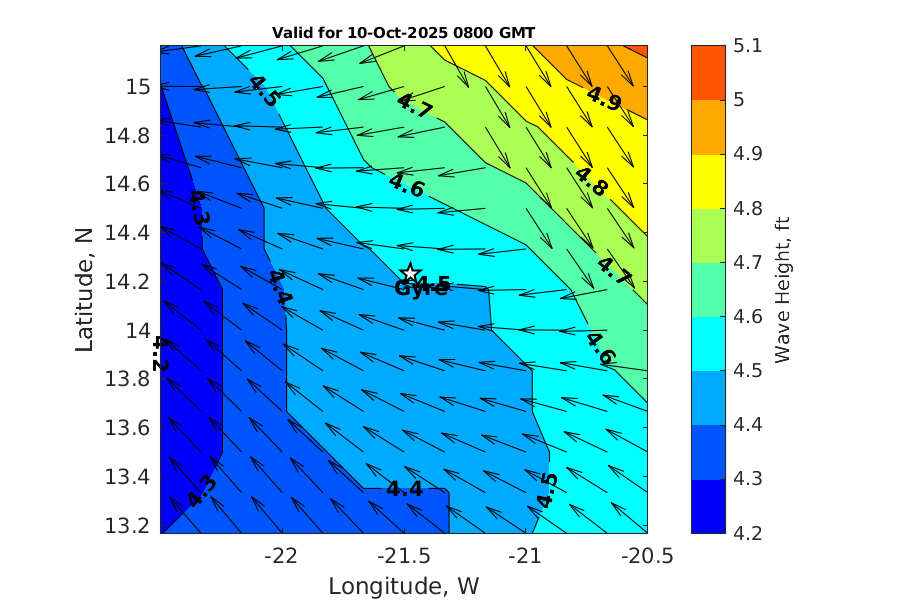 Latitude: 14.231N Longitude: 21.474W Position is valid as of 06-Oct-2025 13:46:06 College Station time.