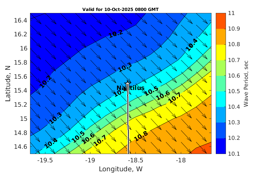Latitude: 15.494N Longitude: 18.589W Position is valid as of 10-Oct-2025 03:40:49 College Station time.