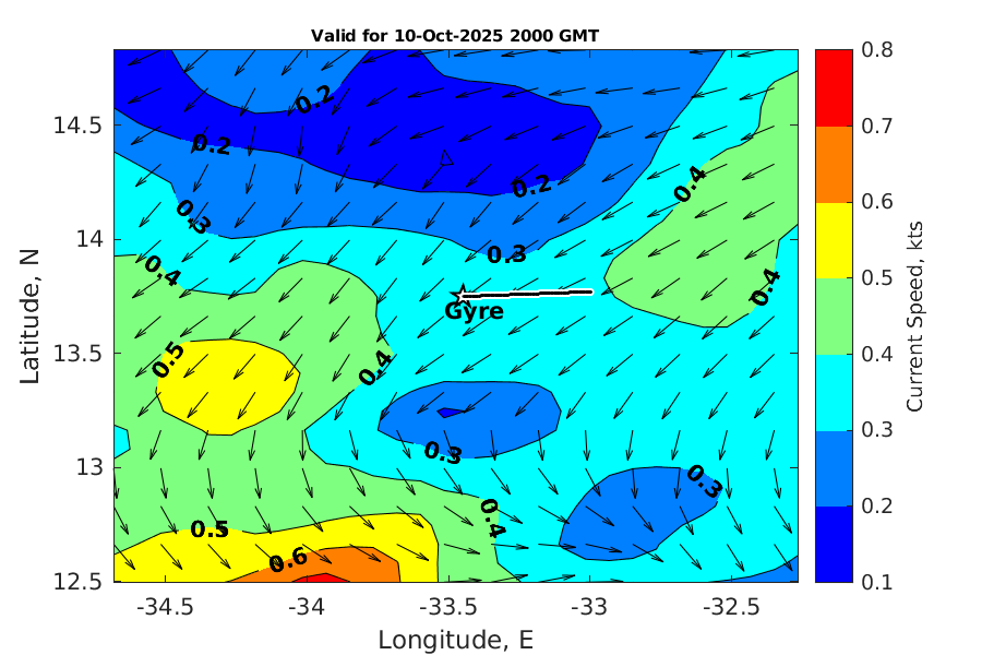 Latitude: 13.749N Longitude: 33.451W Position is valid as of 10-Oct-2025 15:32:58 College Station time.