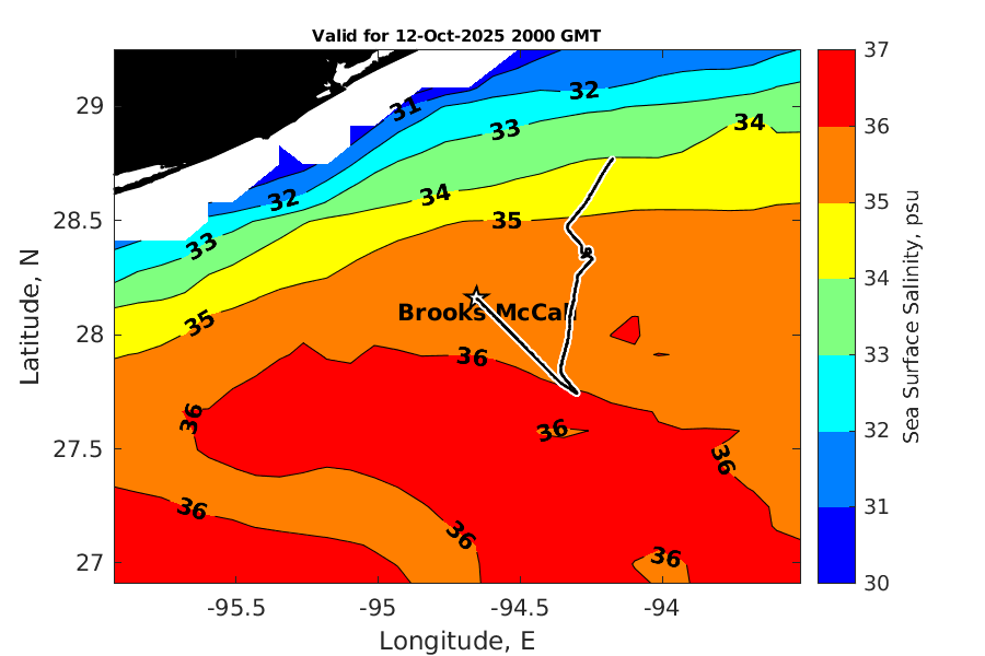 Latitude: 28.160N Longitude: 94.654W Position is valid as of 12-Oct-2025 15:28:58 College Station time.