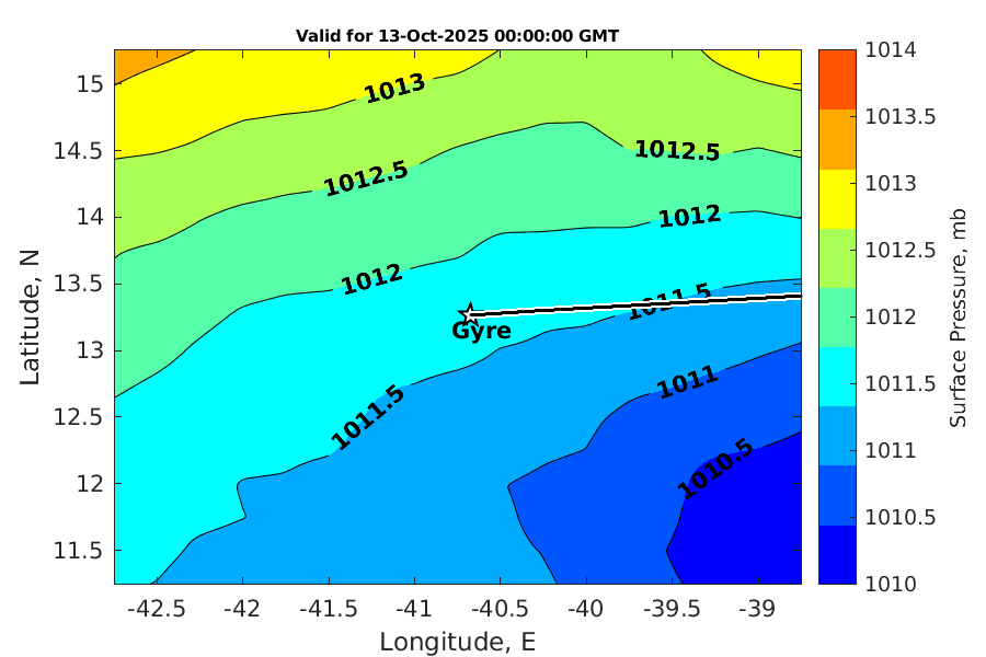 Latitude: 13.264N Longitude: 40.677W Position is valid as of 13-Oct-2025 03:32:49 College Station time.