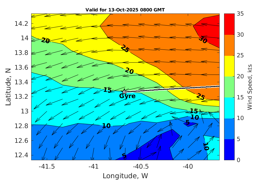 Latitude: 13.264N Longitude: 40.677W Position is valid as of 13-Oct-2025 03:32:49 College Station time.