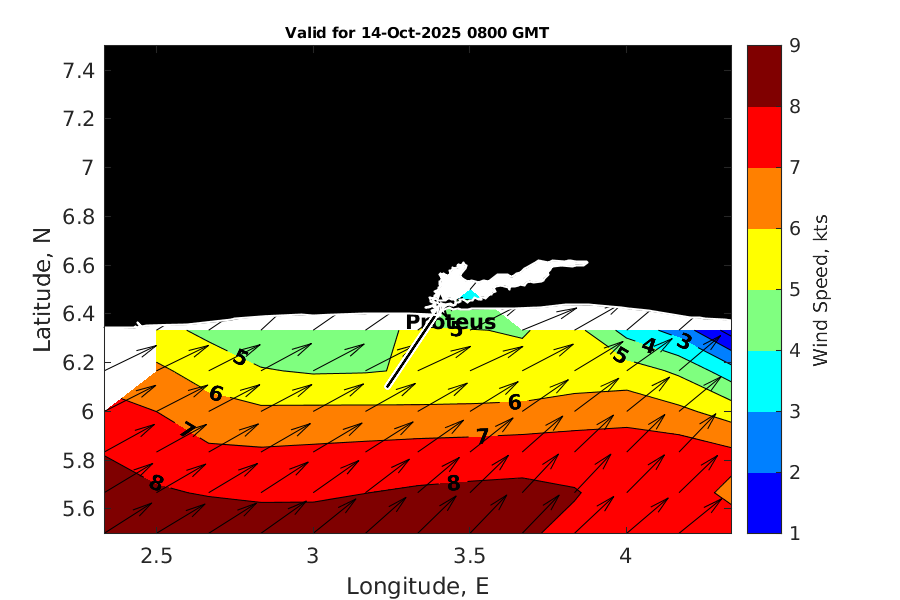 Latitude: 6.425N Longitude: 3.406E Position is valid as of 14-Oct-2025 03:49:07 College Station time.