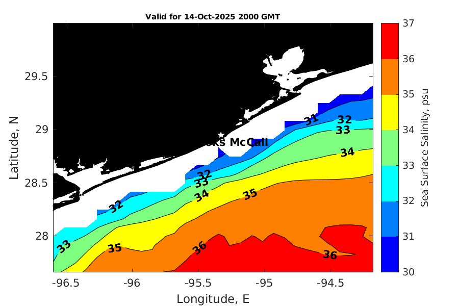 Latitude: 28.948N Longitude: 95.329W Position is valid as of 14-Oct-2025 15:28:52 College Station time.