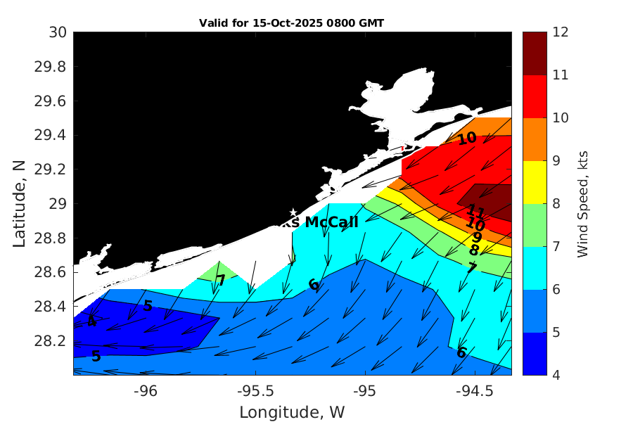 Latitude: 28.948N Longitude: 95.329W Position is valid as of 15-Oct-2025 03:28:50 College Station time.