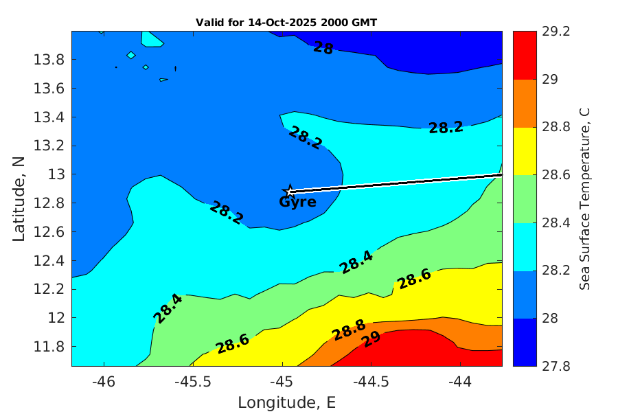 Latitude: 12.877N Longitude: 44.956W Position is valid as of 14-Oct-2025 15:33:48 College Station time.