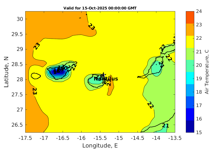 Latitude: 28.140N Longitude: 15.415W Position is valid as of 15-Oct-2025 03:40:54 College Station time.