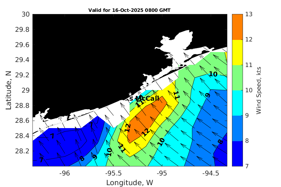 Latitude: 28.948N Longitude: 95.329W Position is valid as of 16-Oct-2025 03:28:55 College Station time.