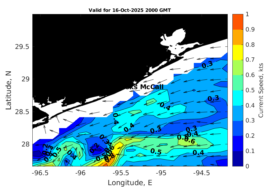 Latitude: 28.948N Longitude: 95.329W Position is valid as of 16-Oct-2025 15:28:55 College Station time.