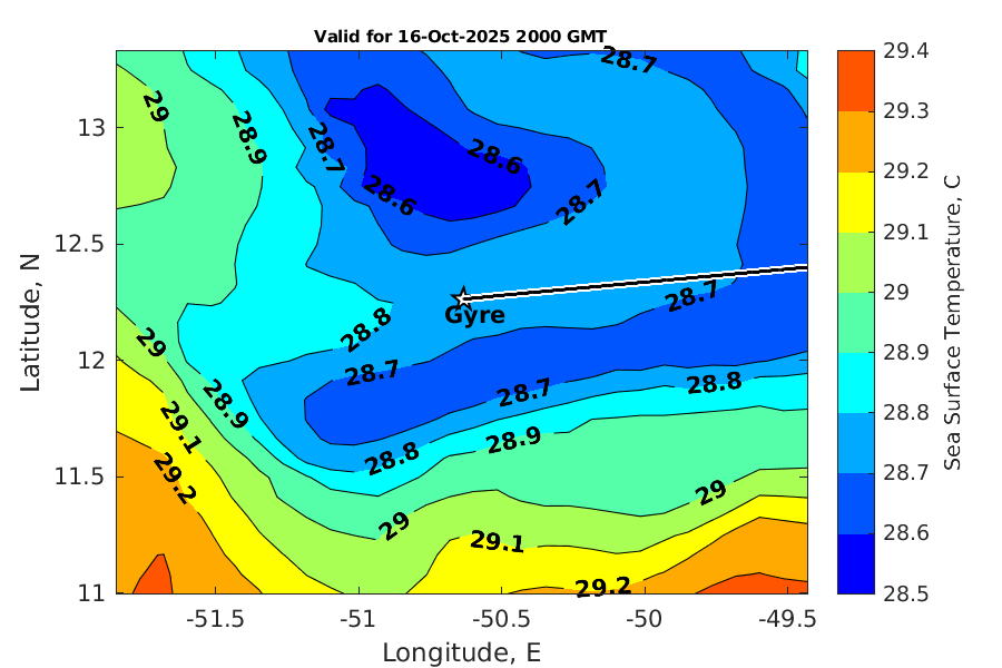 Latitude: 12.262N Longitude: 50.635W Position is valid as of 16-Oct-2025 15:33:53 College Station time.