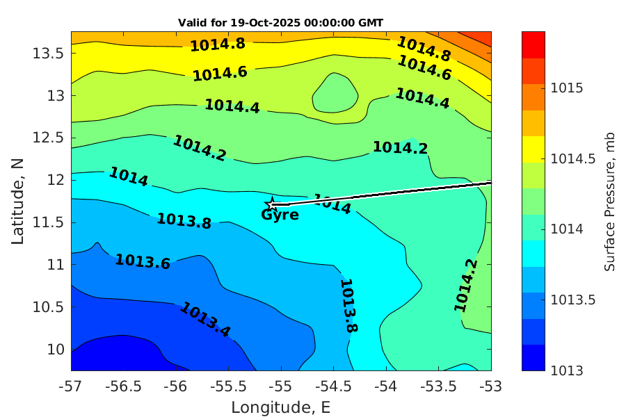 Latitude: 11.706N Longitude: 55.084W Position is valid as of 18-Oct-2025 03:32:56 College Station time.