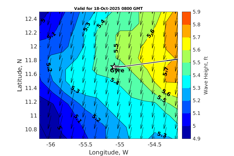 Latitude: 11.706N Longitude: 55.084W Position is valid as of 18-Oct-2025 03:32:56 College Station time.