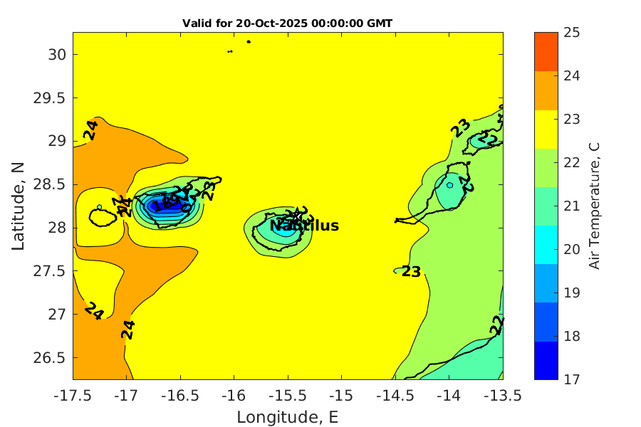 Latitude: 28.140N Longitude: 15.415W Position is valid as of 20-Oct-2025 03:35:58 College Station time.