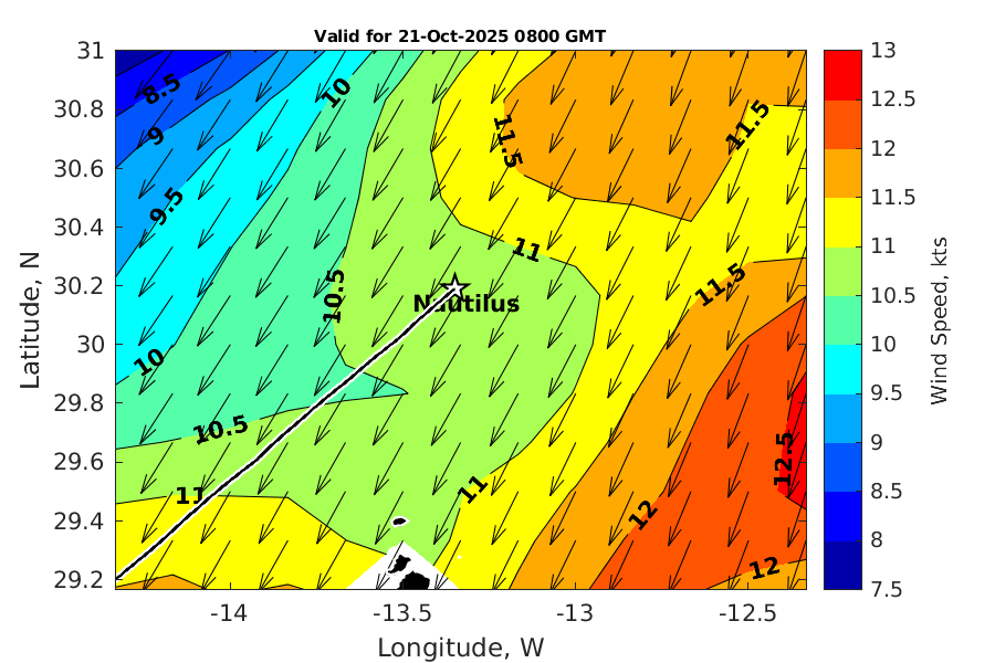 Latitude: 30.191N Longitude: 13.349W Position is valid as of 21-Oct-2025 03:35:57 College Station time.