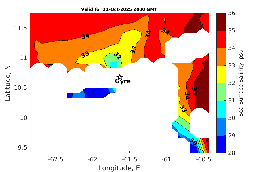 Latitude: 10.675N Longitude: 61.634W Position is valid as of 21-Oct-2025 15:33:52 College Station time.