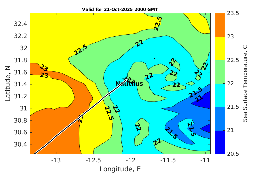 Latitude: 31.475N Longitude: 12.063W Position is valid as of 21-Oct-2025 15:37:56 College Station time.
