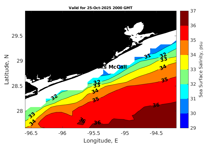 Latitude: 28.948N Longitude: 95.329W Position is valid as of 25-Oct-2025 15:28:58 College Station time.