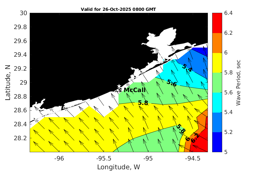 Latitude: 28.948N Longitude: 95.329W Position is valid as of 26-Oct-2025 03:28:49 College Station time.