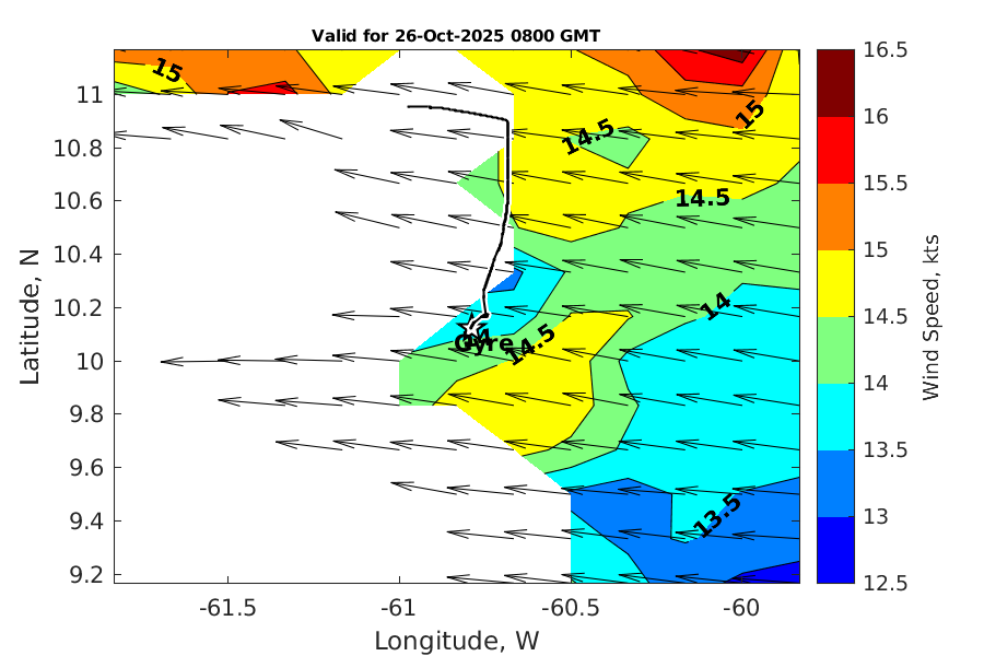 Latitude: 10.122N Longitude: 60.789W Position is valid as of 26-Oct-2025 02:35:51 College Station time.