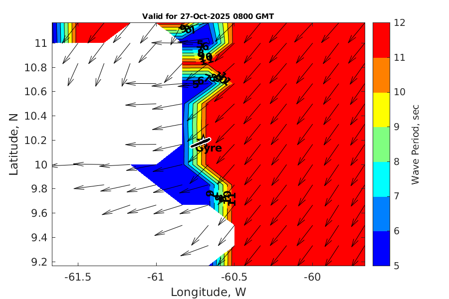 Latitude: 10.194N Longitude: 60.700W Position is valid as of 27-Oct-2025 03:32:58 College Station time.