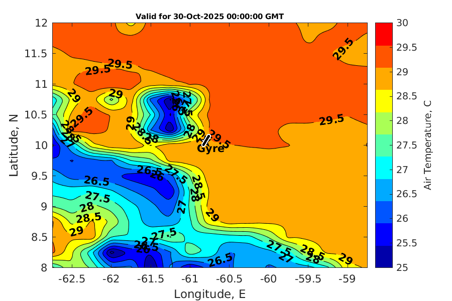 Latitude: 10.064N Longitude: 60.806W Position is valid as of 30-Oct-2025 03:32:48 College Station time.