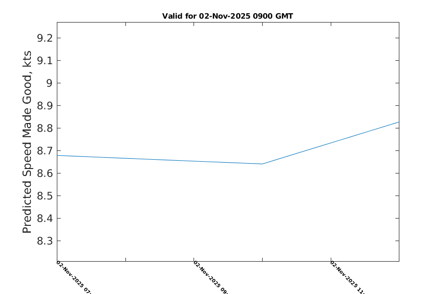 Transit time is 6.6 hours at mean speed of 8.56 kts
