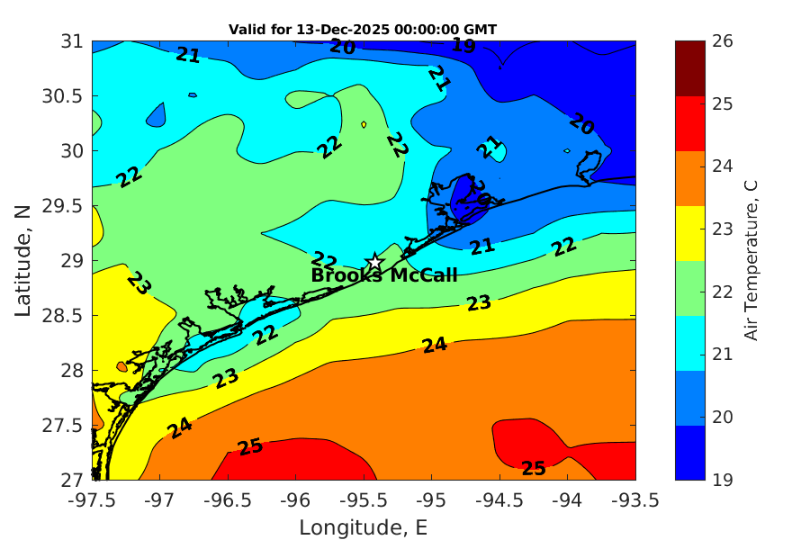 Latitude: 28.979N Longitude: 95.417W Position is valid as of 11-Dec-2025 03:28:52 College Station time.