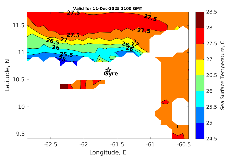 Latitude: 10.675N Longitude: 61.634W Position is valid as of 11-Dec-2025 15:33:53 College Station time.