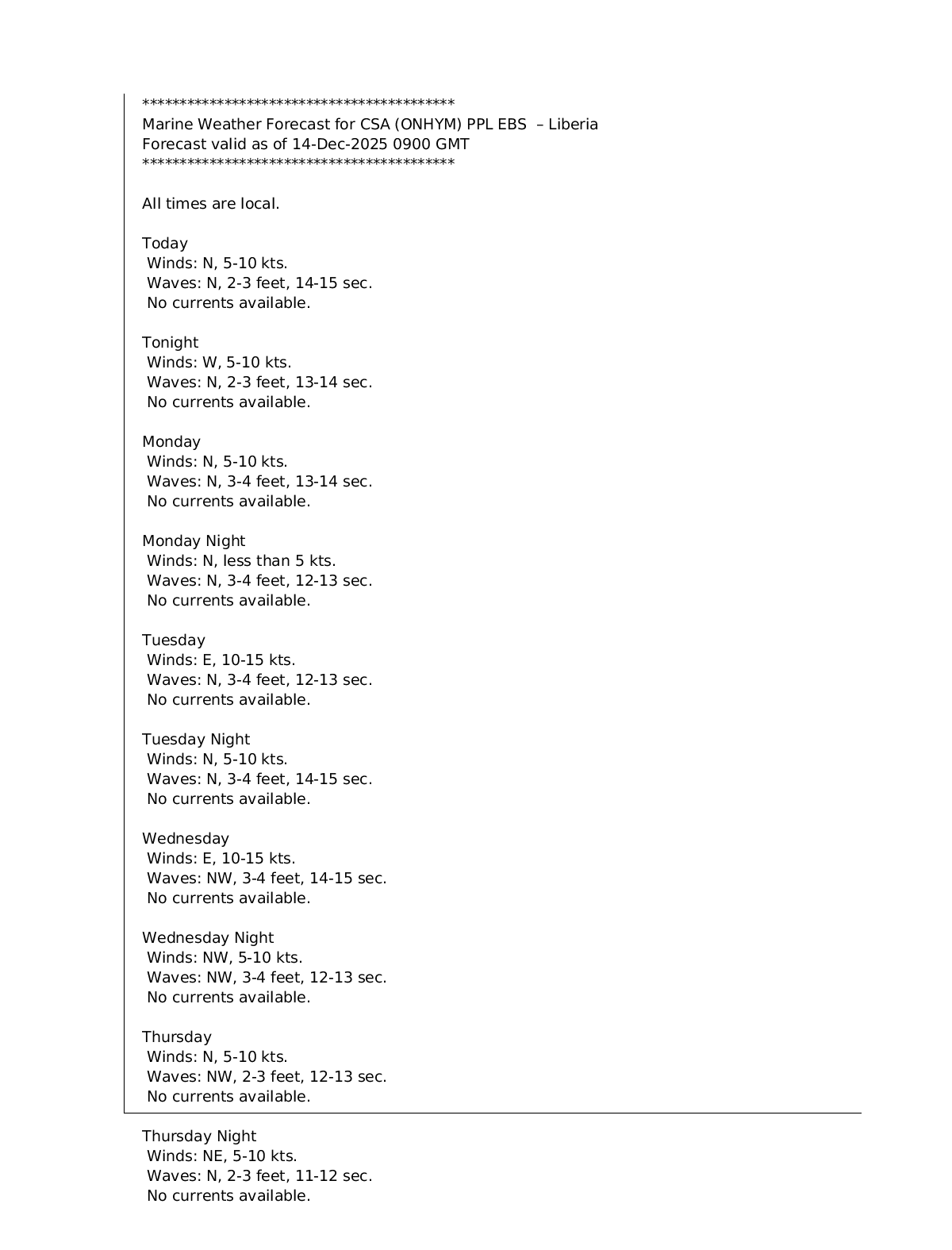 Latitude: 5.909N Longitude: 10.290W