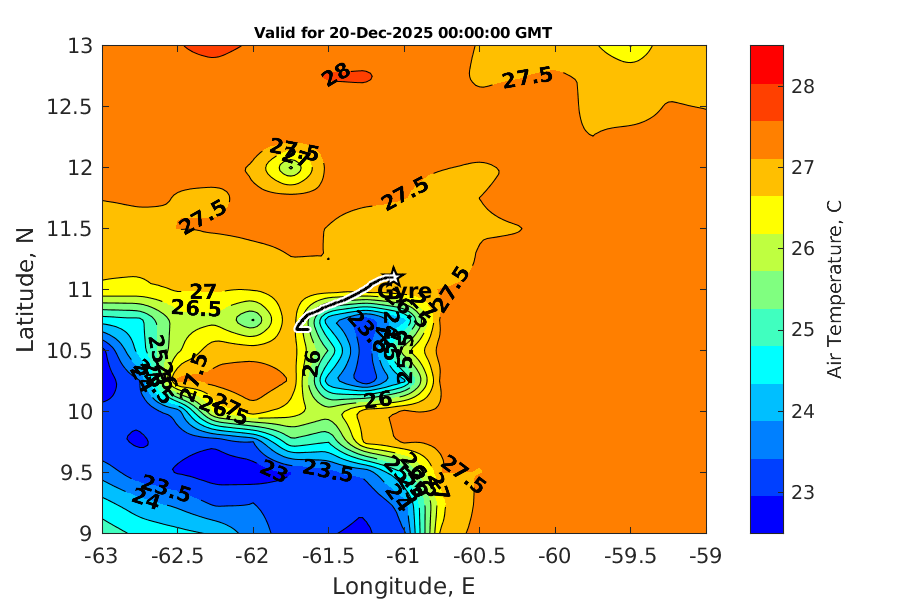 Latitude: 11.100N Longitude: 61.069W Position is valid as of 19-Dec-2025 03:33:46 College Station time.