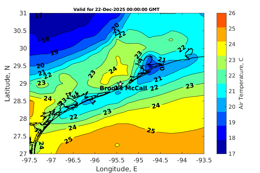 Latitude: 28.979N Longitude: 95.417W Position is valid as of 20-Dec-2025 03:28:55 College Station time.
