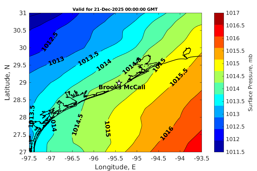 Latitude: 28.979N Longitude: 95.417W Position is valid as of 20-Dec-2025 03:28:55 College Station time.
