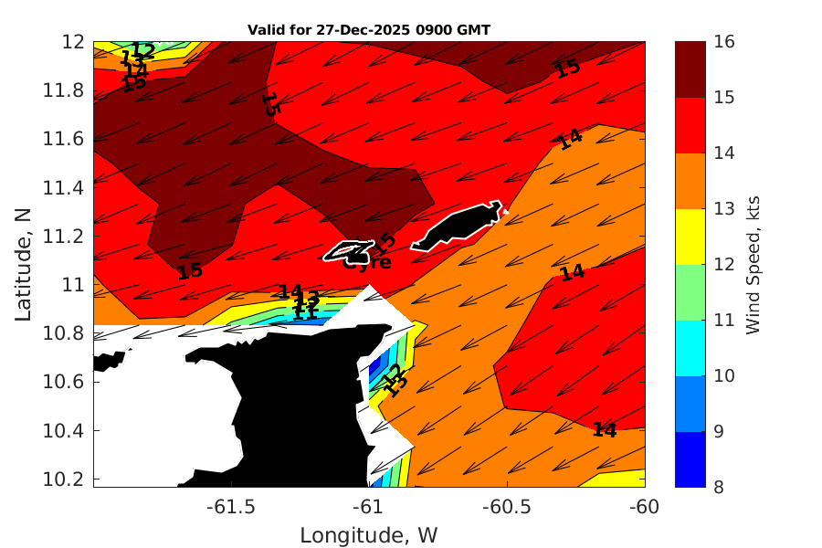 Latitude: 11.146N Longitude: 61.043W Position is valid as of 27-Dec-2025 03:33:57 College Station time.