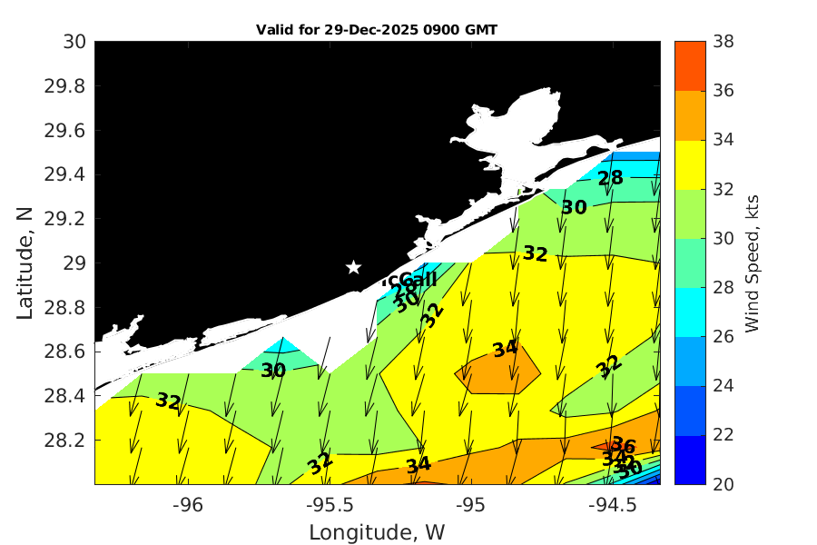 Latitude: 28.979N Longitude: 95.417W Position is valid as of 29-Dec-2025 03:28:48 College Station time.