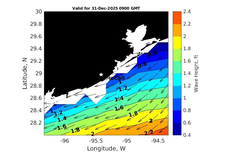Latitude: 28.979N Longitude: 95.417W Position is valid as of 31-Dec-2025 03:29:00 College Station time.
