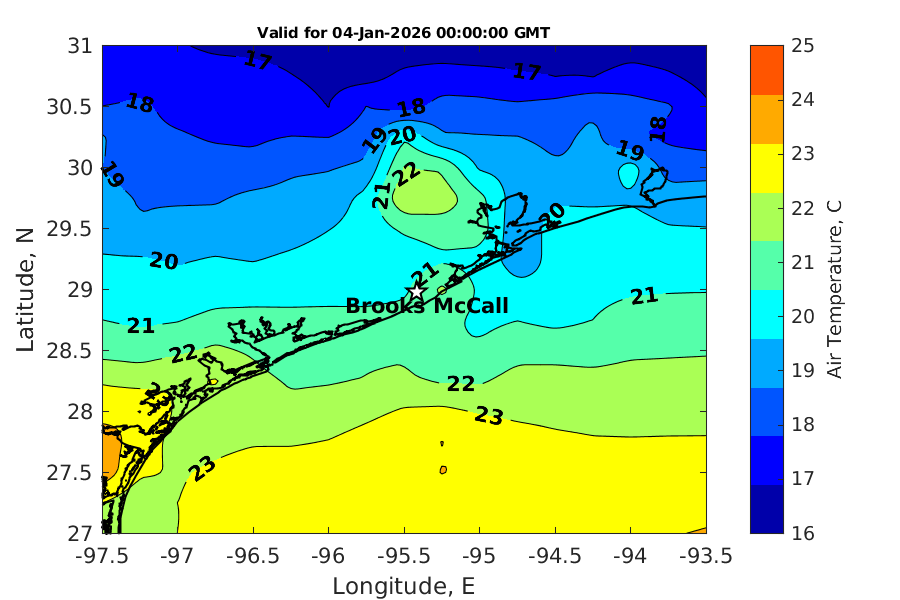Latitude: 28.979N Longitude: 95.417W Position is valid as of 03-Jan-2026 03:28:58 College Station time.