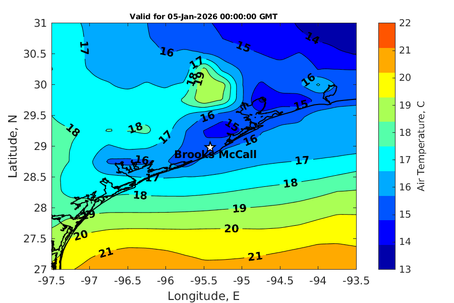 Latitude: 28.979N Longitude: 95.417W Position is valid as of 04-Jan-2026 03:28:51 College Station time.