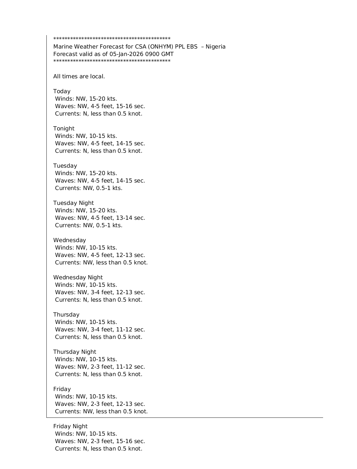 CSA (ONHYM) PPL EBS – Nigeria