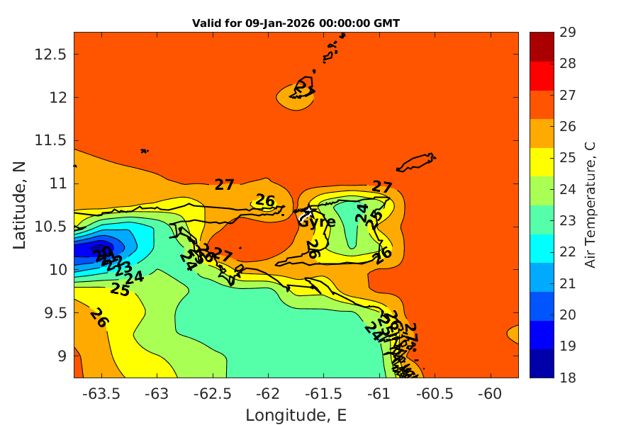 Latitude: 10.675N Longitude: 61.634W Position is valid as of 08-Jan-2026 03:33:49 College Station time.