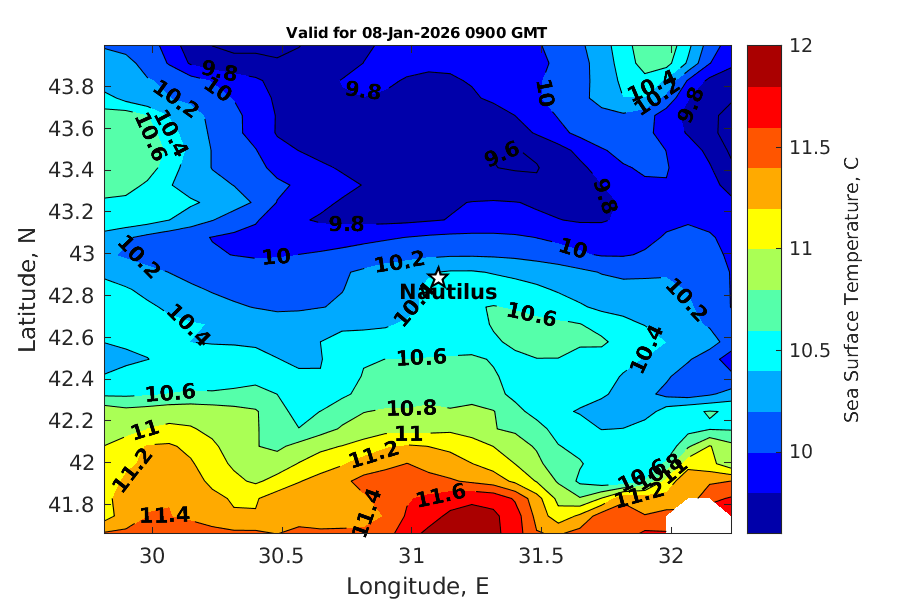 Latitude: 42.884N Longitude: 31.101E Position is valid as of 08-Jan-2026 03:35:04 College Station time.