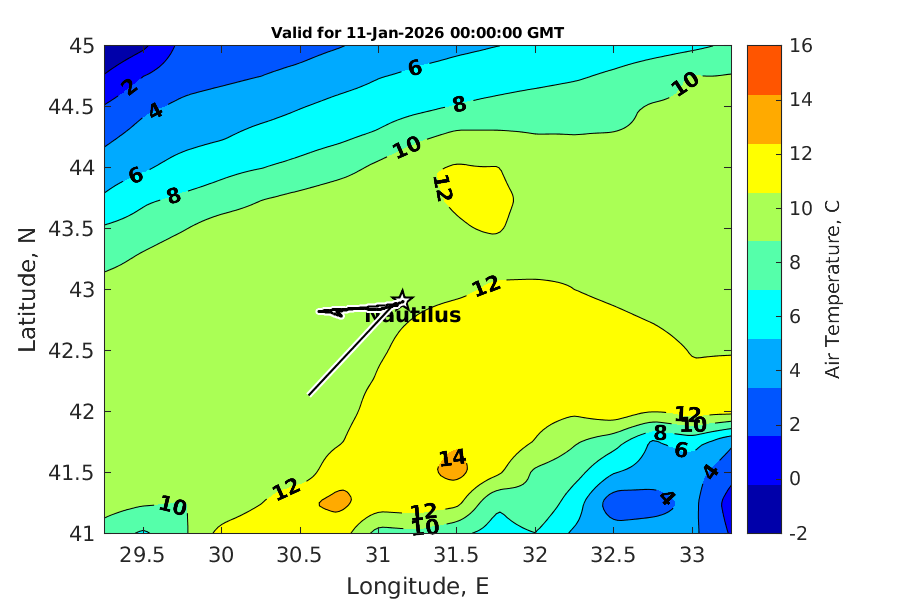 Latitude: 42.905N Longitude: 31.151E Position is valid as of 09-Jan-2026 03:38:48 College Station time.