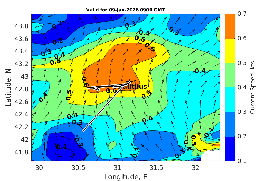 Latitude: 42.905N Longitude: 31.151E Position is valid as of 09-Jan-2026 03:38:48 College Station time.