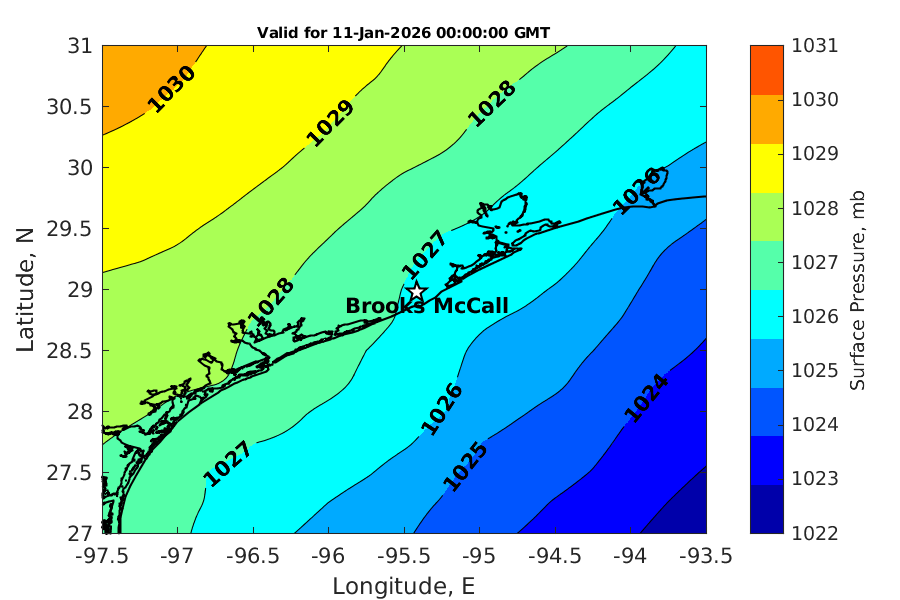Latitude: 28.979N Longitude: 95.417W Position is valid as of 11-Jan-2026 03:28:51 College Station time.