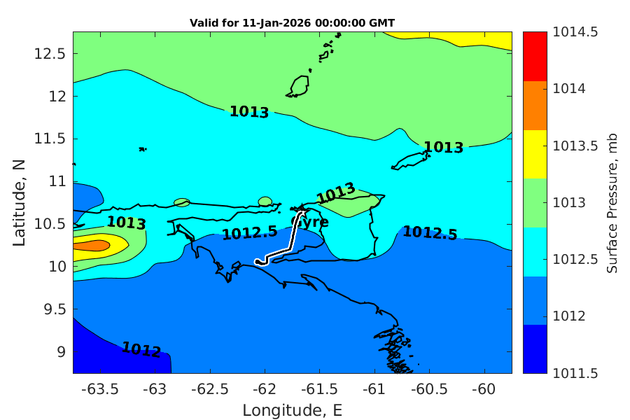 Latitude: 10.637N Longitude: 61.661W Position is valid as of 11-Jan-2026 03:33:49 College Station time.