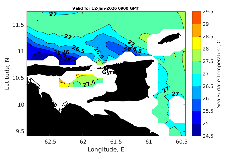 Latitude: 10.675N Longitude: 61.634W Position is valid as of 12-Jan-2026 03:33:58 College Station time.